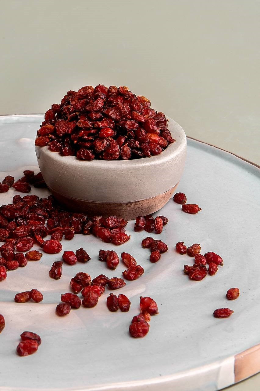 Berberisväxten, som har taggiga grenar saftiga bär som torkas långsamt för att bli torkad berberis. Torkad berberis innehåller mycket vitamin C och antioxidanter. Den ger också en frisk smak till mat och dryck.