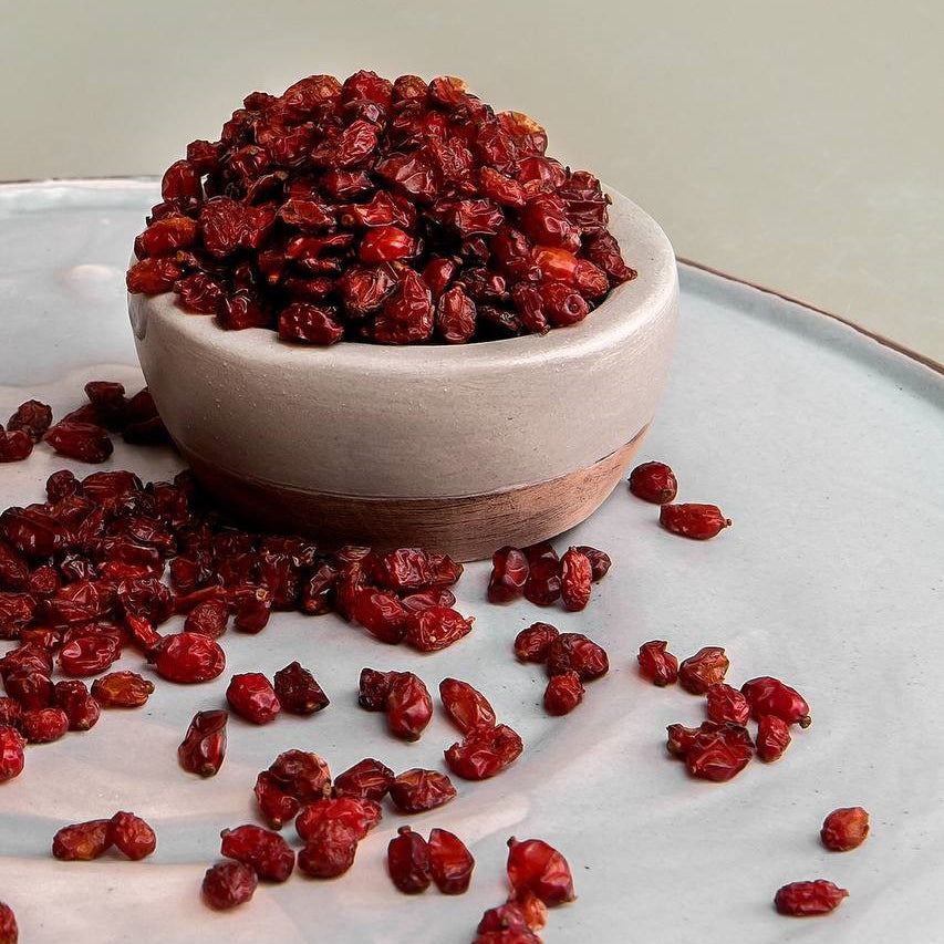 Berberisväxten, som har taggiga grenar saftiga bär som torkas långsamt för att bli torkad berberis. Torkad berberis innehåller mycket vitamin C och antioxidanter. Den ger också en frisk smak till mat och dryck.