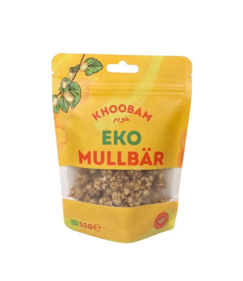 Veganska, soltorkade, ekologiska mullbär med söt och nötig smak. Näringsrikt och hälsosamt snack direkt ur förpackningen, eller något att strö över din frukost.